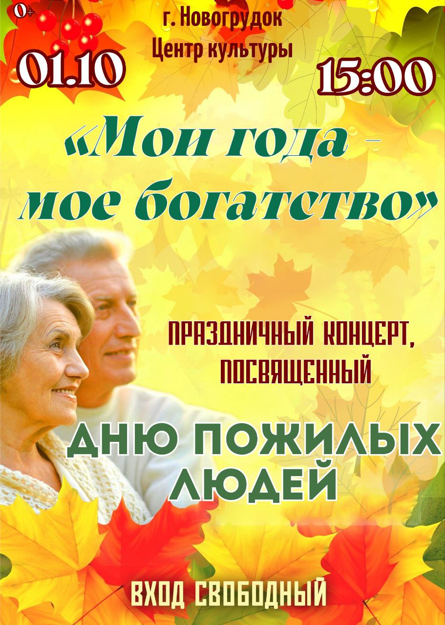 Приглашаем вас 1 октября в 15:00 в Новогрудский Центр культуры и народного творчества, на праздничный концерт, посвящённый Дню пожилых людей — дню доброты, благодарности и душевного тепла. Пусть этот вечер станет для вас праздником сердца, а наша сцена — местом, где звучит благодарность за вашу мудрость, заботу и жизненный путь Читать далее »