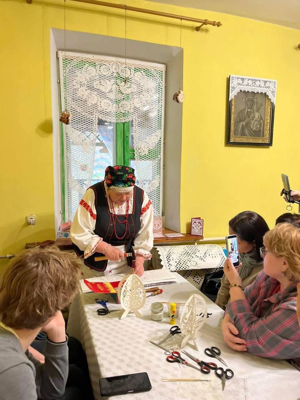 Вытинанка-выбиванка – это филигранная работа с бумагой, требующая терпения, аккуратности и, конечно, таланта. Участники мастер-класса под чутким руководством Натальи Климко осваивали основные техники создания ажурных узоров, узнали о символике орнаментов и их значении в народной культуре.