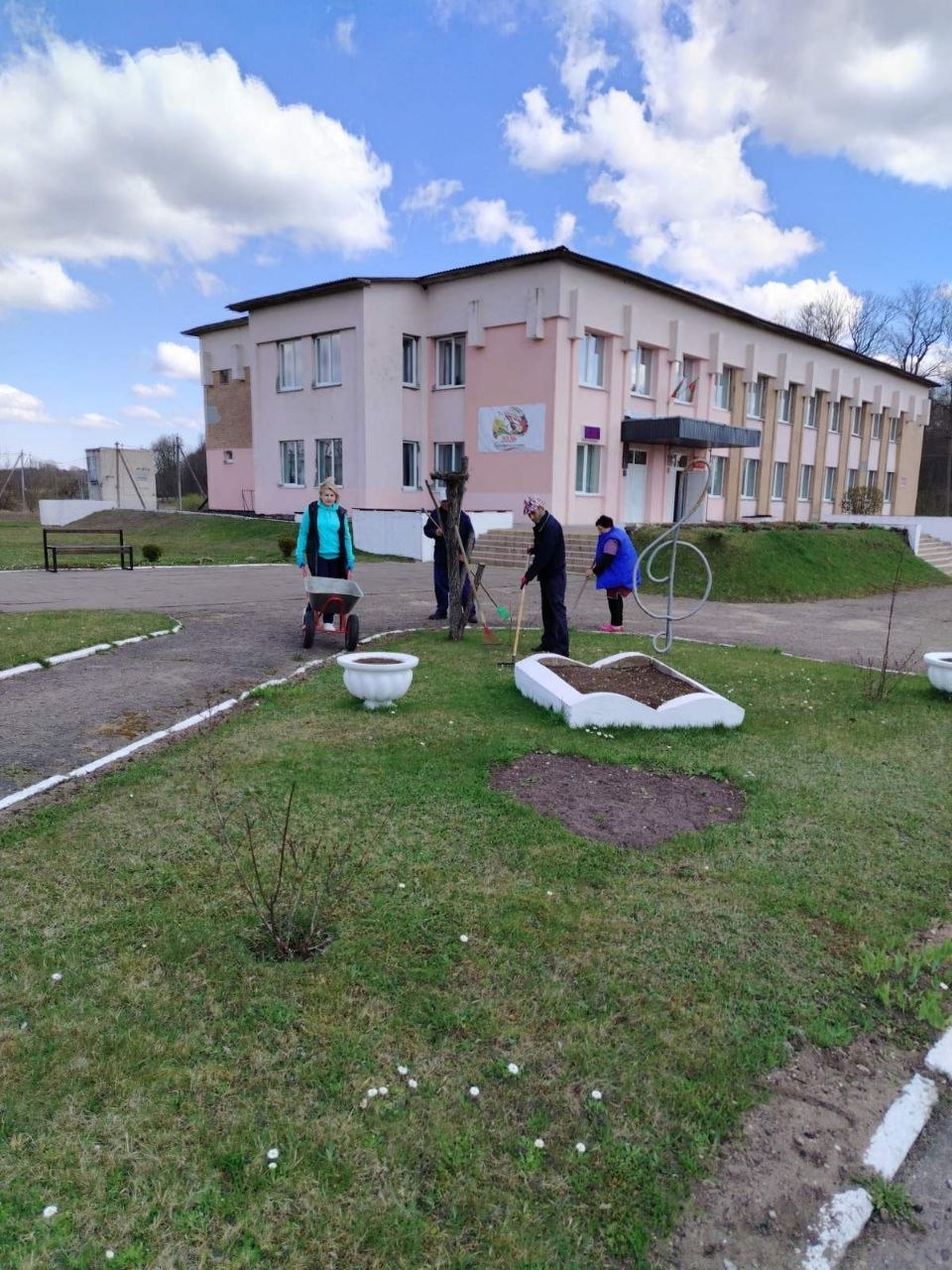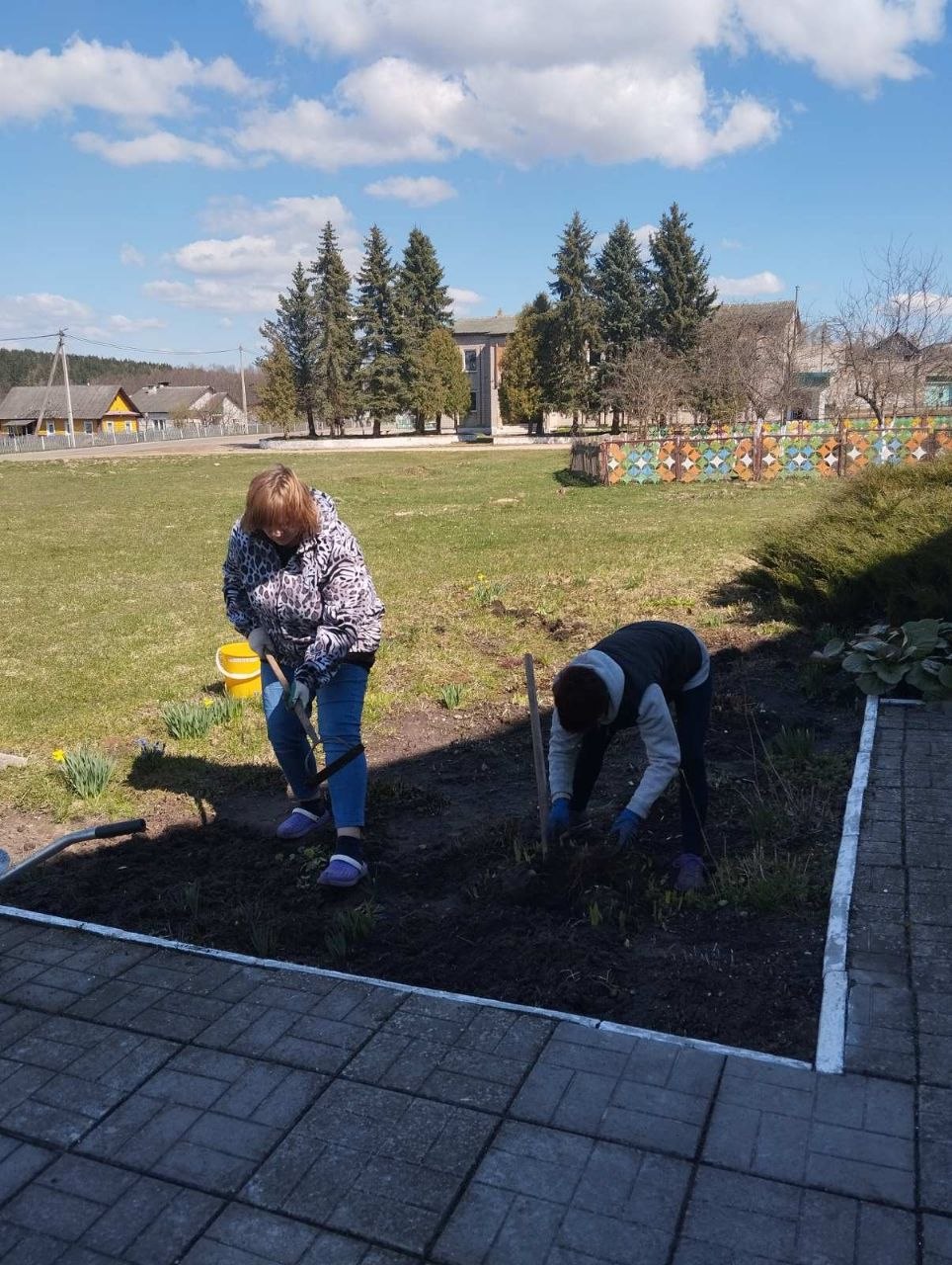 Территория вокруг учреждений преобразилась. 🌳 Очищены дорожки и клумбы, убран мусор и высажены цветы, и теперь учреждения культуры радуют глаз ухоженным видом!