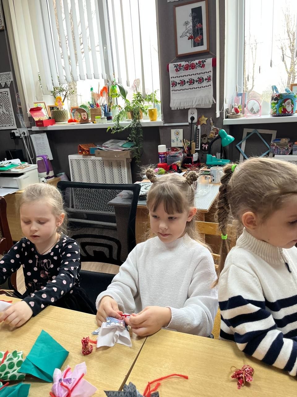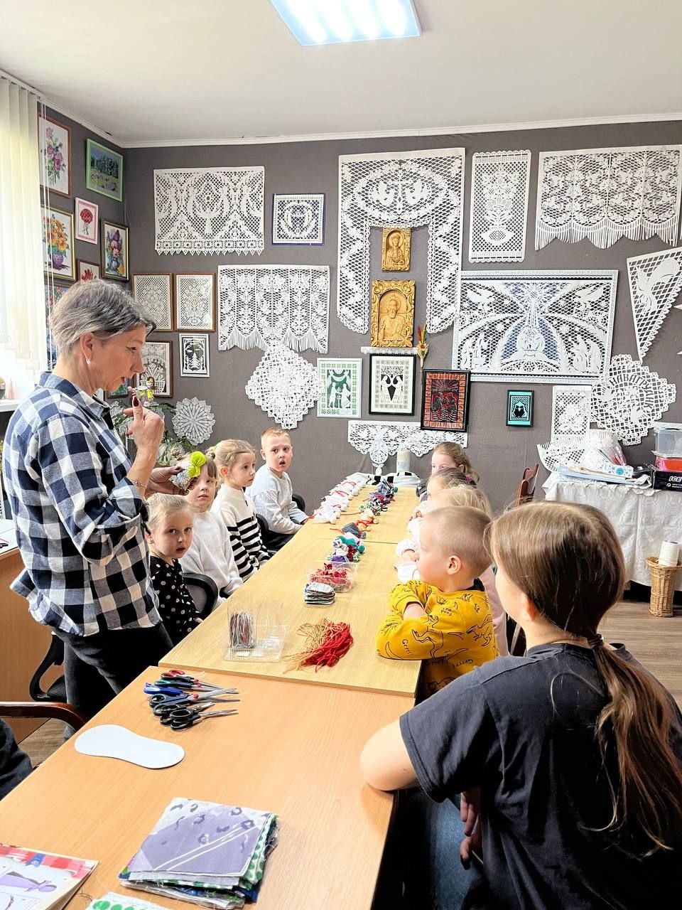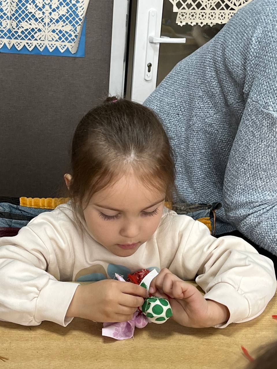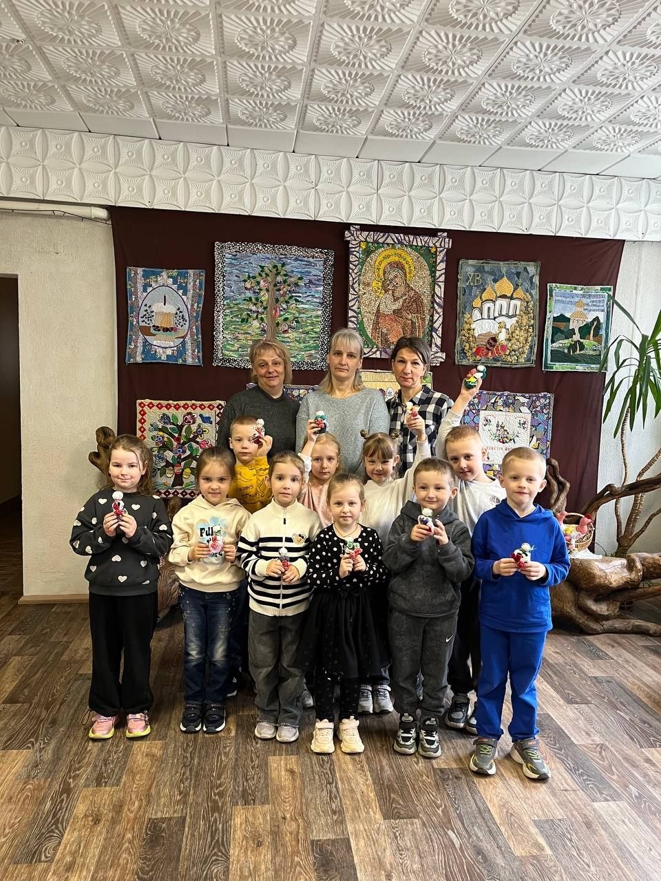 Детям было предложено своими руками смастерить этот простой, но очень символичный оберег. Под чутким руководством мастеров, малыши с энтузиазмом выбирали лоскутки, набивали кукол тканью и формировали ее облик. Каждый ребенок вложил в свою «Подорожницу» частичку души, создавая уникальную игрушку, которая станет не просто подарком, а своеобразным символом заботы и тепла.